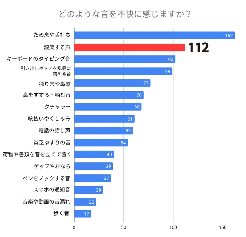 これらの結果から、笑い声を含む人の声は自然と耳に入りやすく、タイミングや音の大きさによって「雑音や騒音」として捉えられ、音ハラにまで発展する可能性があるようです。