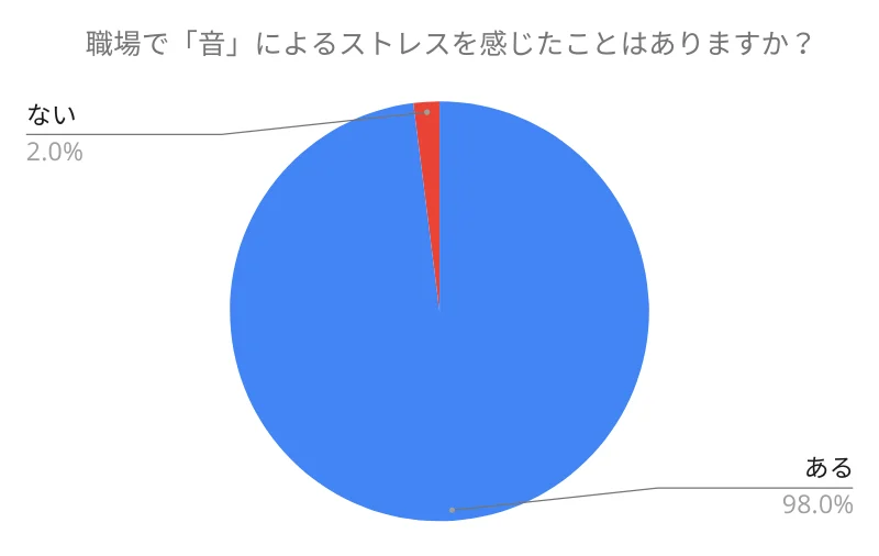 例えば、ある「音ハラスメント」に関するアンケート調査では、職場で「音」によるストレスを感じた経験のある人は98%もいました。